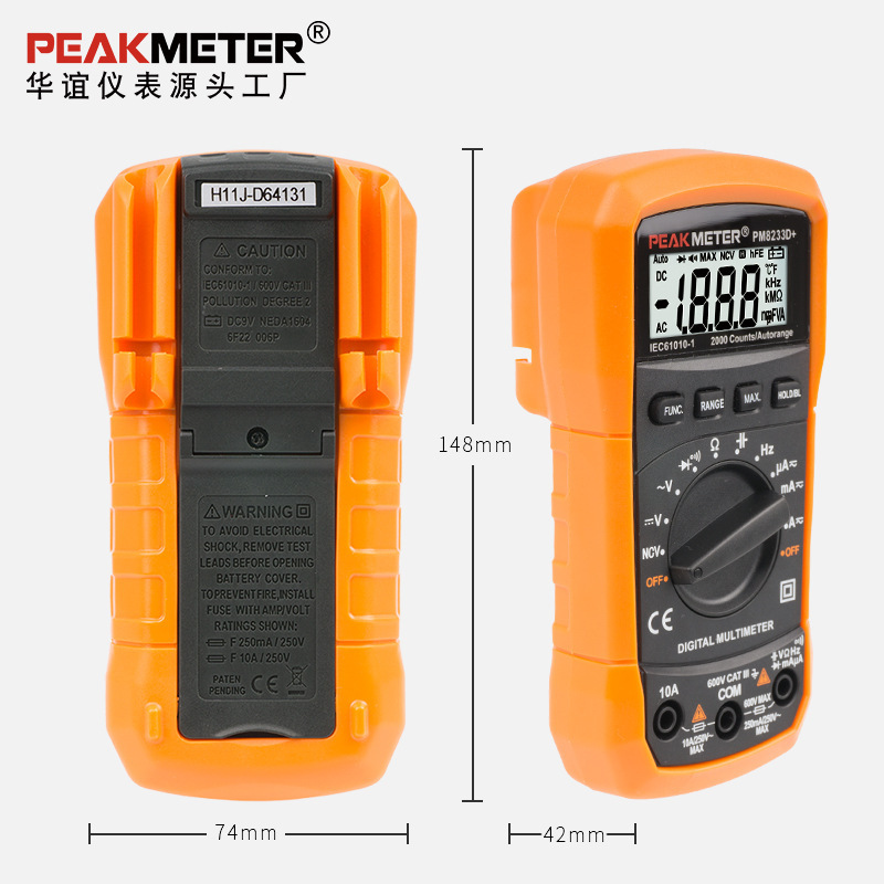 Huayi PEAKMETER digital presisi tinggi multimeter PM8233D + rentang otomatis NCV kapasitor untuk ahli listrik