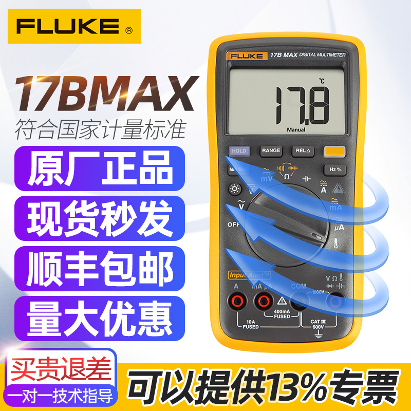 FLUKE FLUKE multimeter digital 17BMAXKIT, jangkauan otomatis portabel dengan lampu latar telapak multifungsi