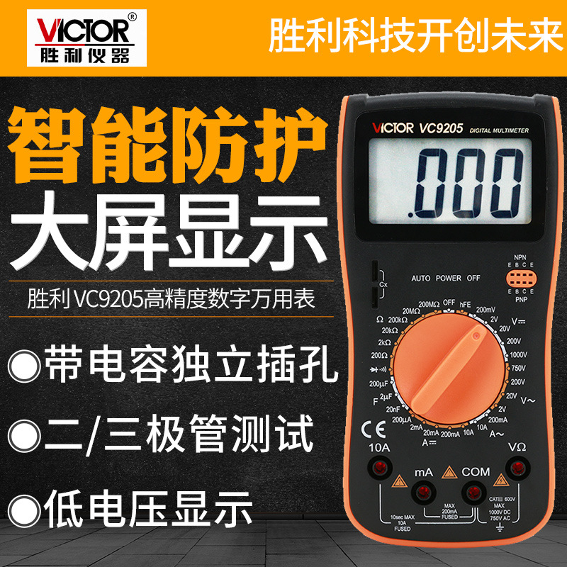 Victory multimeter digital VC9205, instrumen layar besar saku universal perlindungan penuh Multimeter sirkuit