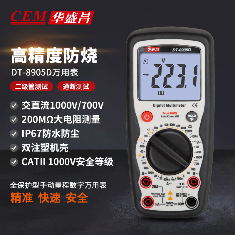 CEM Jinchang multimeter digital manual portabel, DT-8905D pengukur multi energi anti bakar presisi tinggi