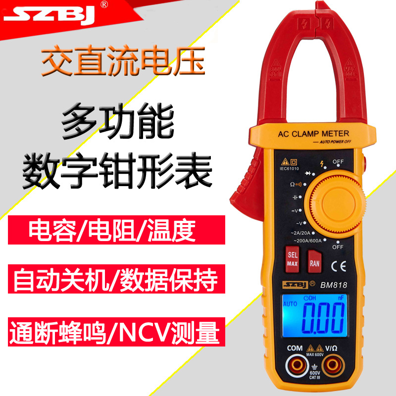Shenzhen Binjiang multimeter penjepit digital BM818/9 pengukuran kapasitansi multifungsi dengan identifikasi garis api NCV bercahaya