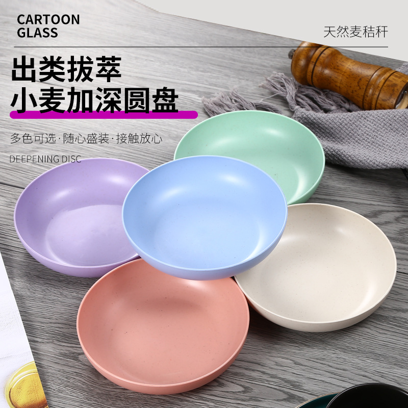 Piring jerami gandum bulat dalam sekop piring rumah tangga cakram kecil jerami gandum meja sampah piring makanan ringan