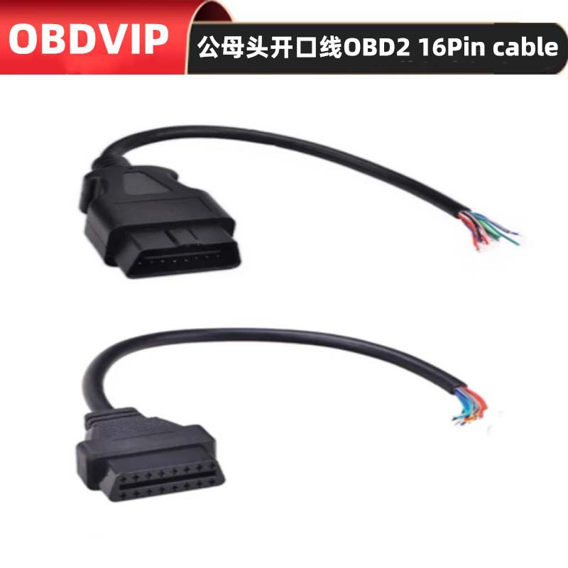 Truk 16 pin mobil OBD konektor Wanita garis terbuka ELM327 kabel ekstensi Pria kabel OBD2