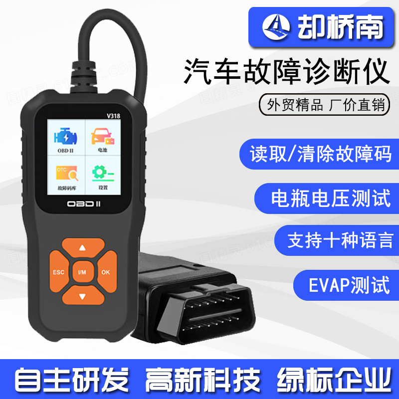 Instrumen diagnosis kesalahan mobil V318, pemindai pembaca kode obd2 layar warna 10 bahasa