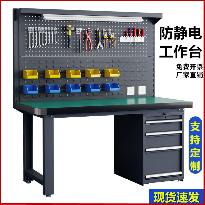 Meja kerja tugas berat, konsol bengkel, fitter Zhuo multifungsi, jalur perakitan pabrik, Meja pemeliharaan antistatis dengan dudukan lampu