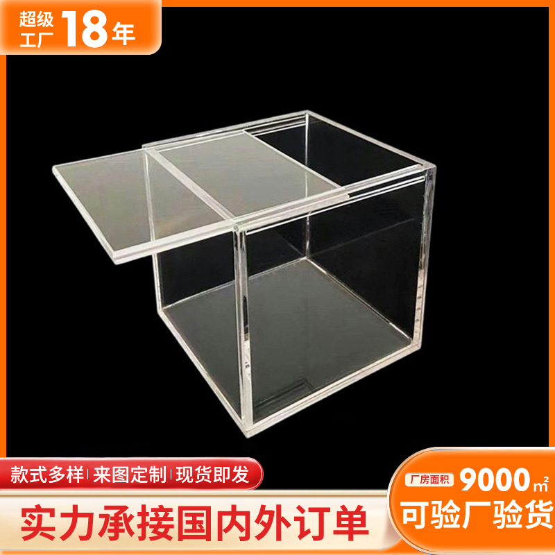 Penutup geser akrilik transparan tinggi kotak tampilan buatan tangan kabinet tampilan percobaan kotak tarik penutup debu terintegrasi