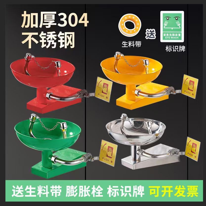 Mesin cuci mata pasang dinding baja tahan karat 304 tebal laboratorium darurat mulut ganda pabrik pencuci mata dinding industri