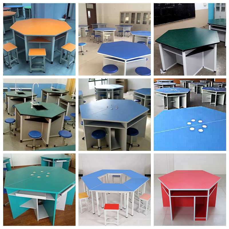 Bingkai aluminium siswa sekolah percobaan meja heksagonal Sains meja enam sisi meja komputer meja ruang fungsional percobaan kimia fisik