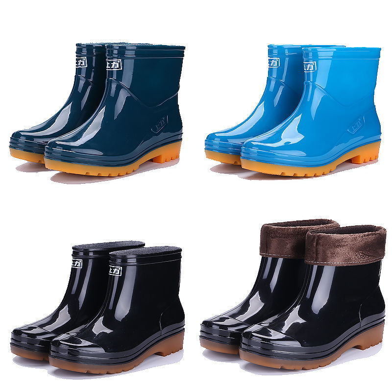 Shangli Sepatu Hujan Anti Licin Pria Sepatu Tahan Air Tambah Beludru Hangat Tabung Pendek Sepatu Karet Dapur Sepatu Set