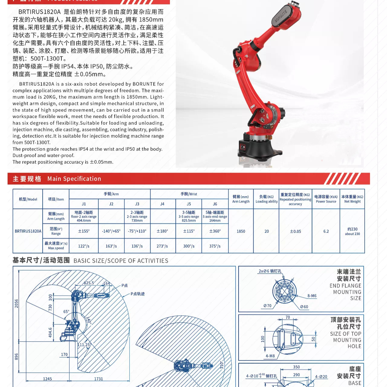 "Hot Sale" robot industri enam sumbu pengelasan robot penanganan robot palletizing robot beban 20kg