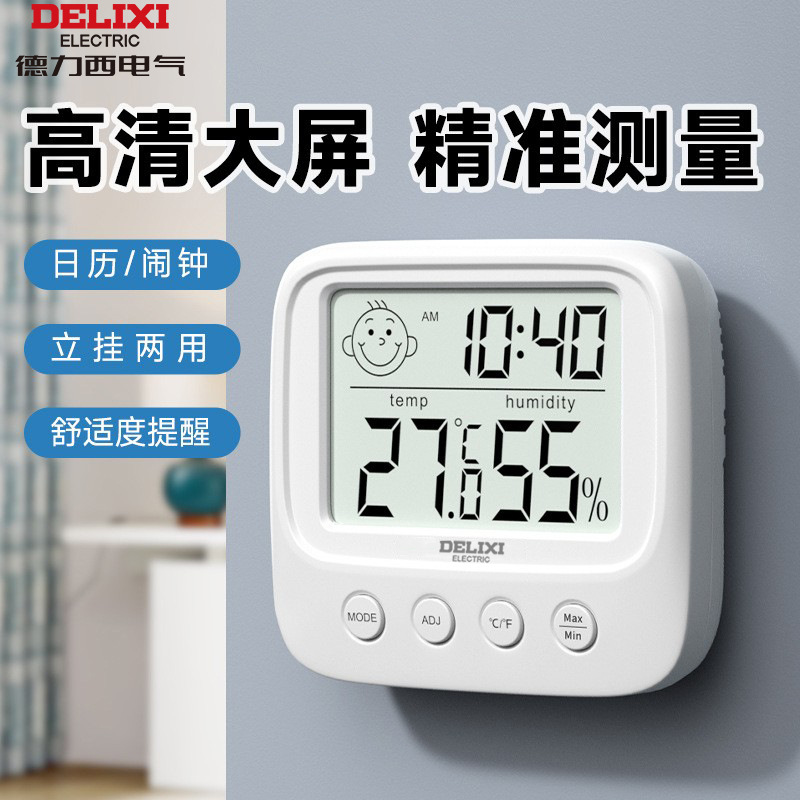 Delixi higrometer digital elektronik dalam ruangan, pengukur suhu dan kelembapan presisi tinggi gantungan dinding detektor basah dan kering