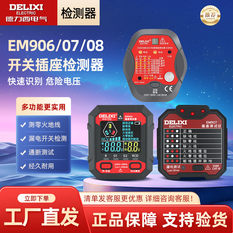 Delixi detektor soket saklar electroskop fase uji polaritas kebocoran deteksi suplai daya EM907/908