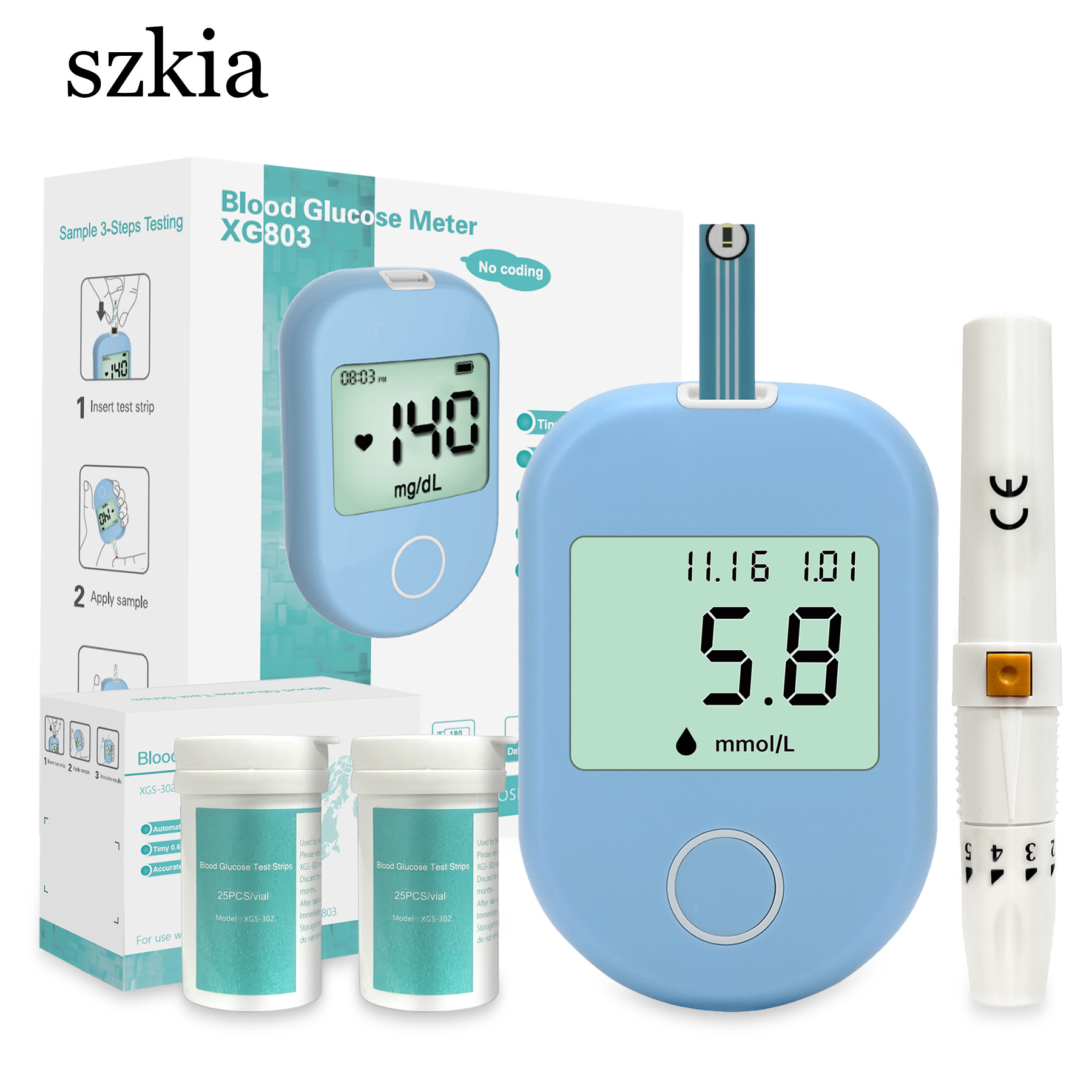 Szkia XG803 penguji glukosa darah otomatis, pengukur glukosa darah rumah tangga dengan kertas uji dan koleksi Darah jarum ekspor lintas batas