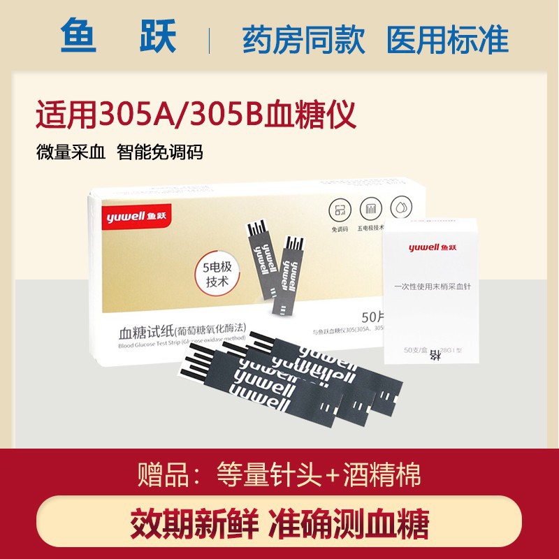 Yuyue 305A/305B penguji glukosa darah, kertas tes glukosa darah otomatis rumah tangga 50 buah tanpa glukosa darah