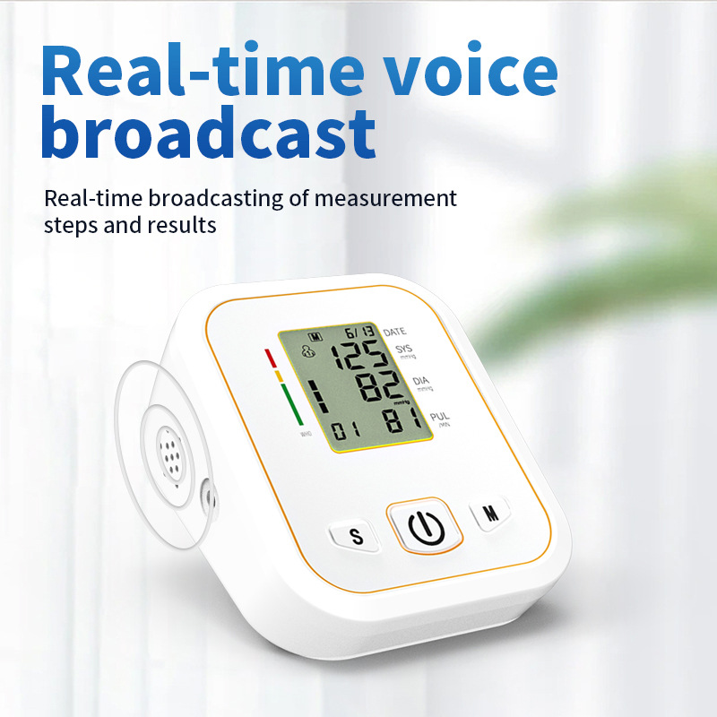 Monitor tekanan darah elektronik lengan atas baru, monitor tekanan darah rumah tangga grosir, model pintar monitor tekanan darah suara Huashizhen