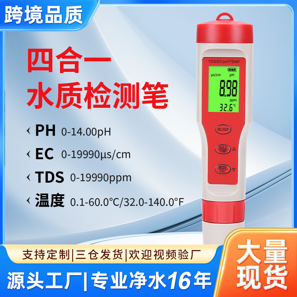Detektor kualitas air, ph/ec/tds/temp, detektor kualitas air Empat dalam satu, acidimeter konduktivitas, pena uji multi-parameter nyaman