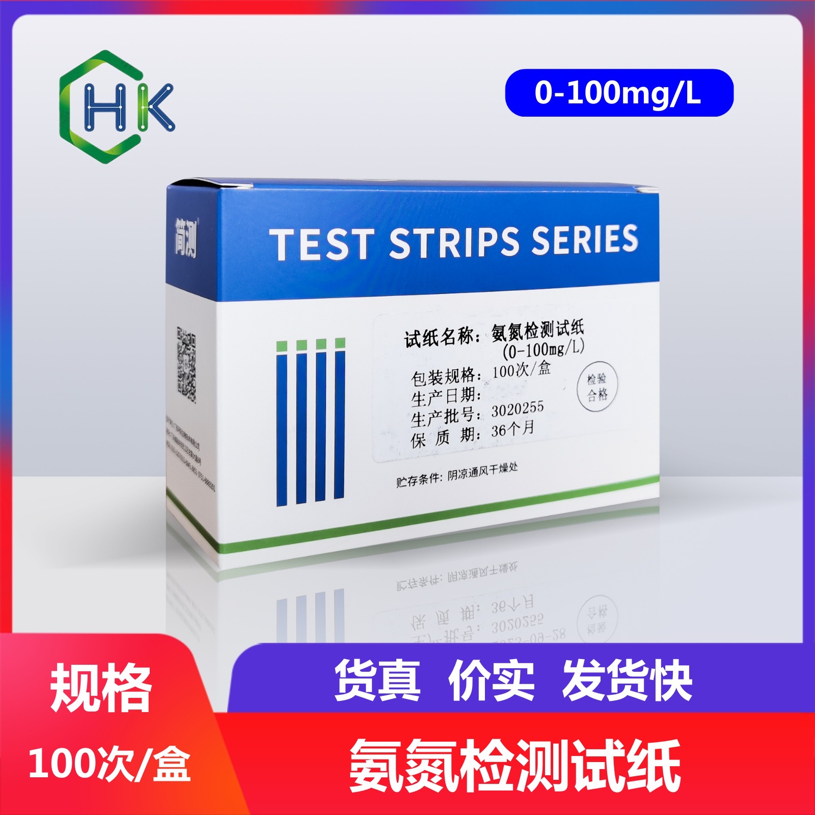 Huankai kertas tes nitrogen amonia 0-0. 100mg/0-400mg/L 100 kali/kotak produk uji kualitas air
