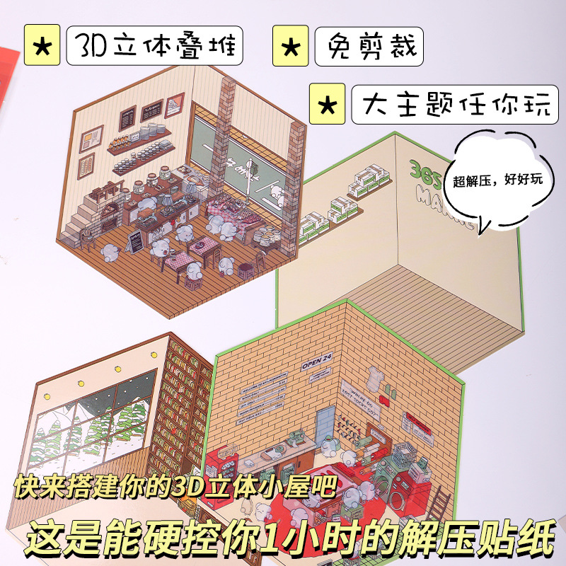 Teka-teki Lintas Batas Tanpa Potong Stiker Penyimpanan Adegan Miniatur Gaya Korea Pemecatan Buatan Tangan DIY