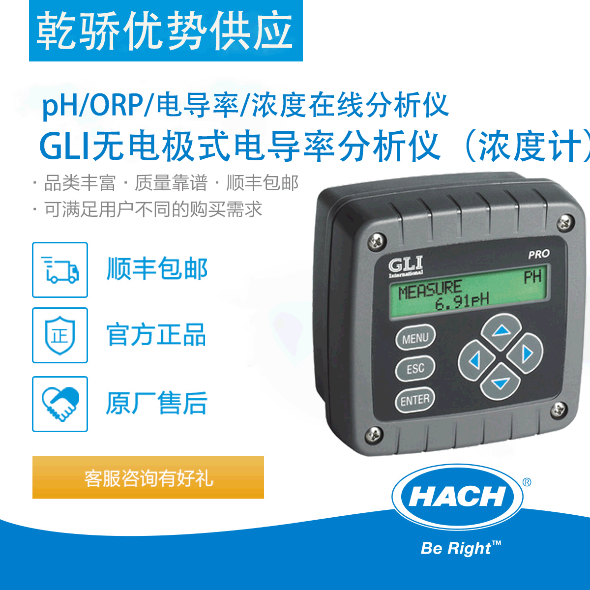 Hash pH/ORP/konduktivitas/konsentrasi online penganalisa GLI electrodeless analyzer konduktivitas