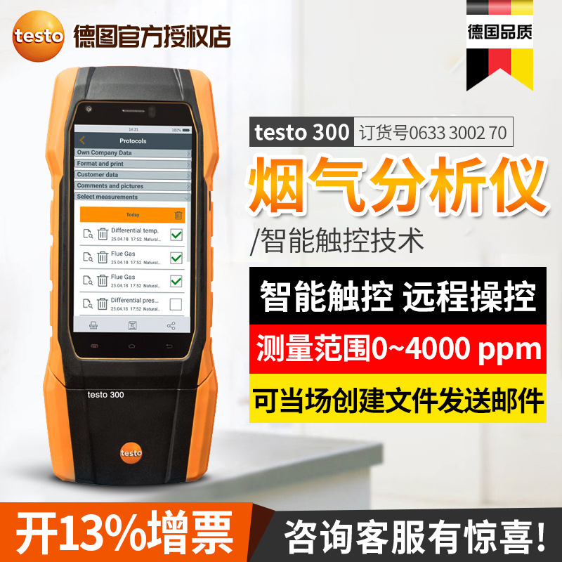 Detu penganalisa gas buang testo300, detektor gas buang asap efisiensi pembakaran NOx portabel