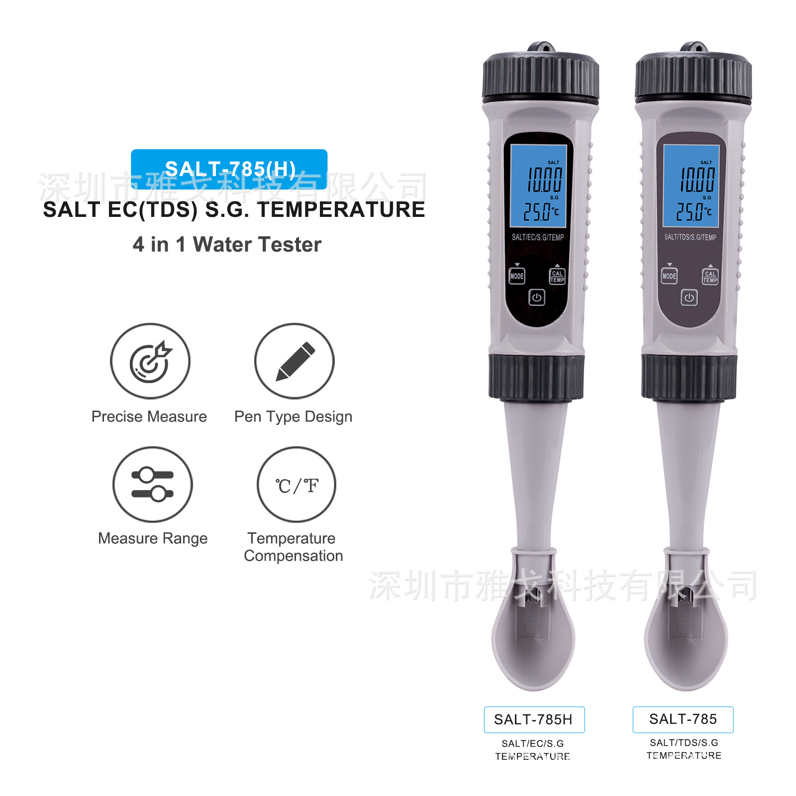 Detektor kualitas air, sendok pena uji makanan air laut, detektor kualitas air Empat dalam satu garam/EC/S.G