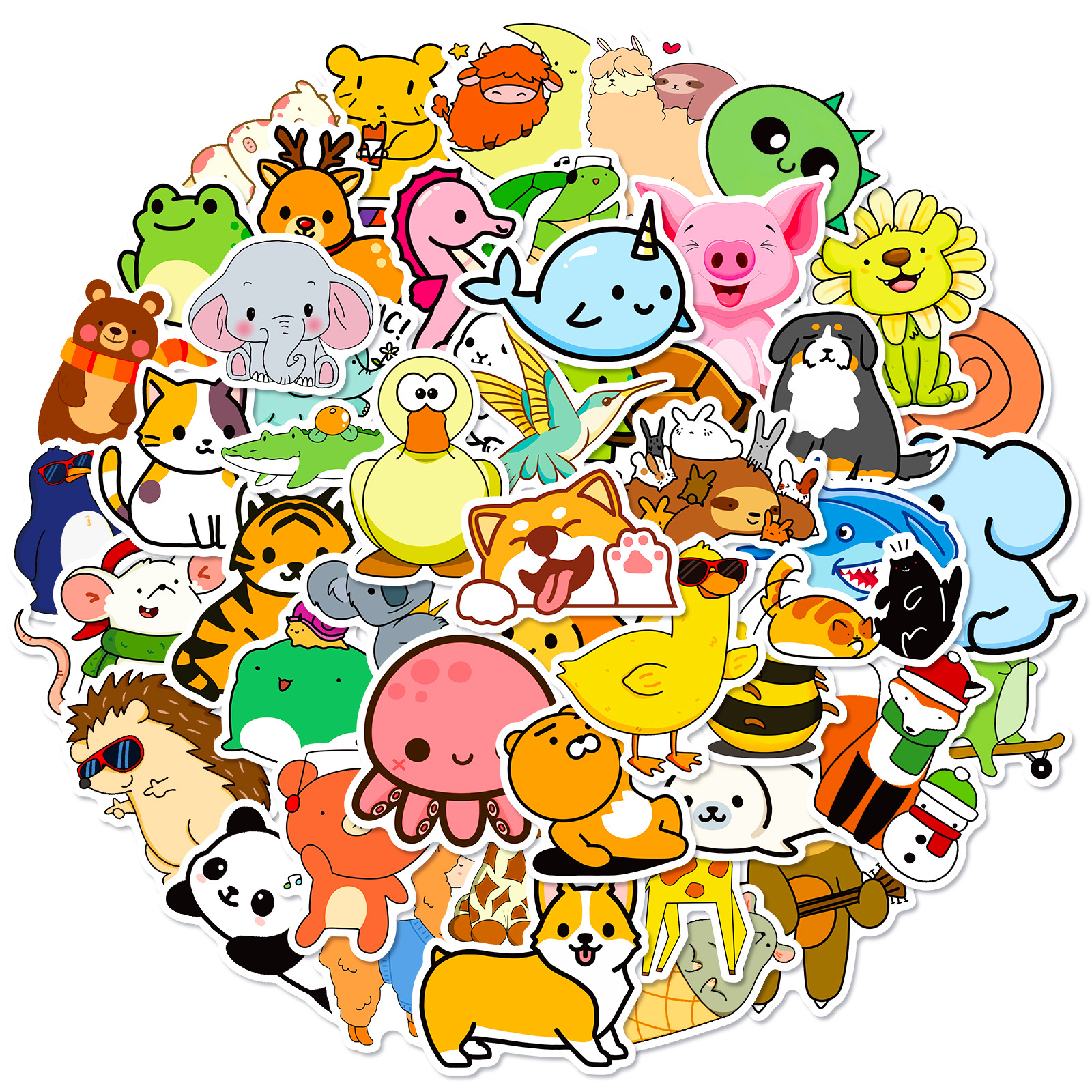 50 stiker hewan lucu anak-anak stiker graffiti Cup Notebook helm kulkas mobil listrik stiker