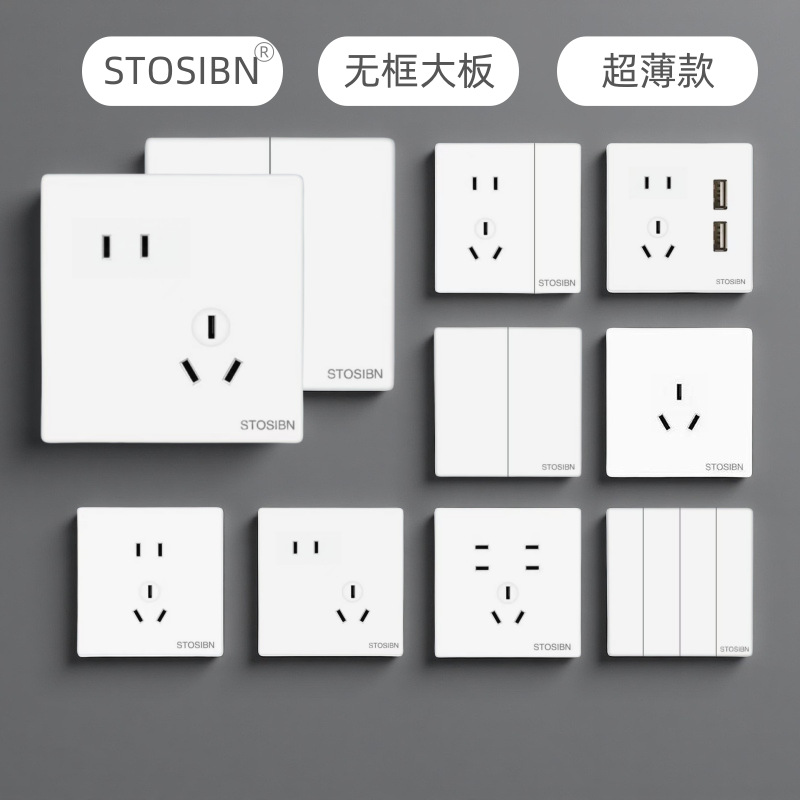 Shi Naide soket, soket lima lubang Ruiyi saklar putih panel AC tipe 86 miring dua tiga colokan TV