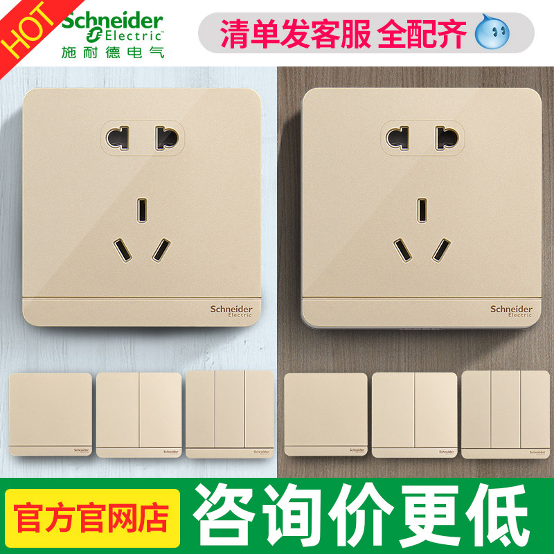 Shi Nai I de soket saklar dalam aliran Shang tipis Twilight panel soket emas dua tiga steker miring lima lubang saklar rumah tangga Ming