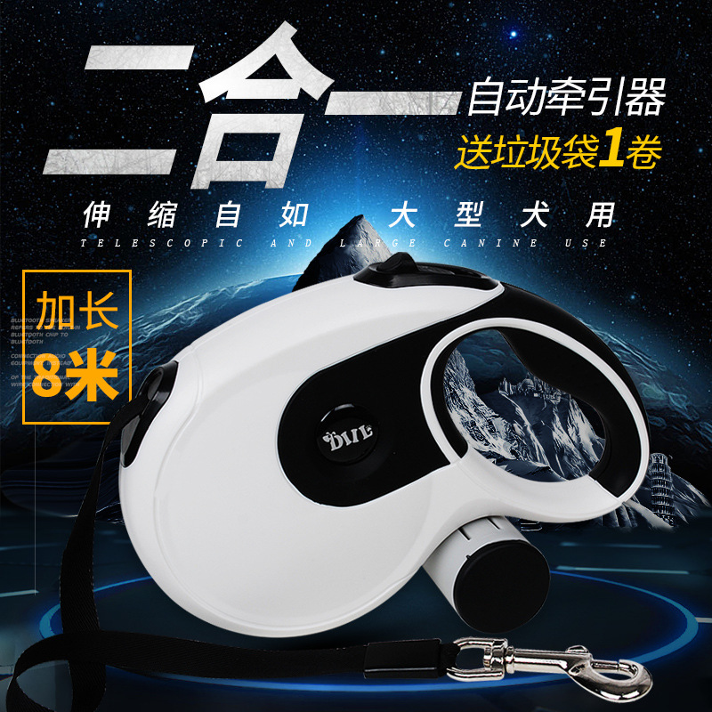 Pabrik langsung hewan peliharaan anjing tali traksi otomatis ditarik dua dalam satu kantong sampah portabel non-slip traktor