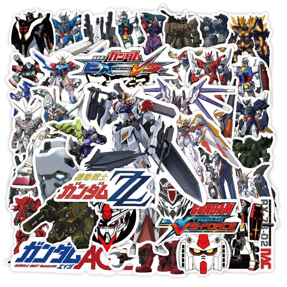 50 lembar Stiker Mobile Suit Gundam Helm Mobil Listrik Casing Ponsel Komputer Stiker Koper Skateboard Stiker Tahan Air