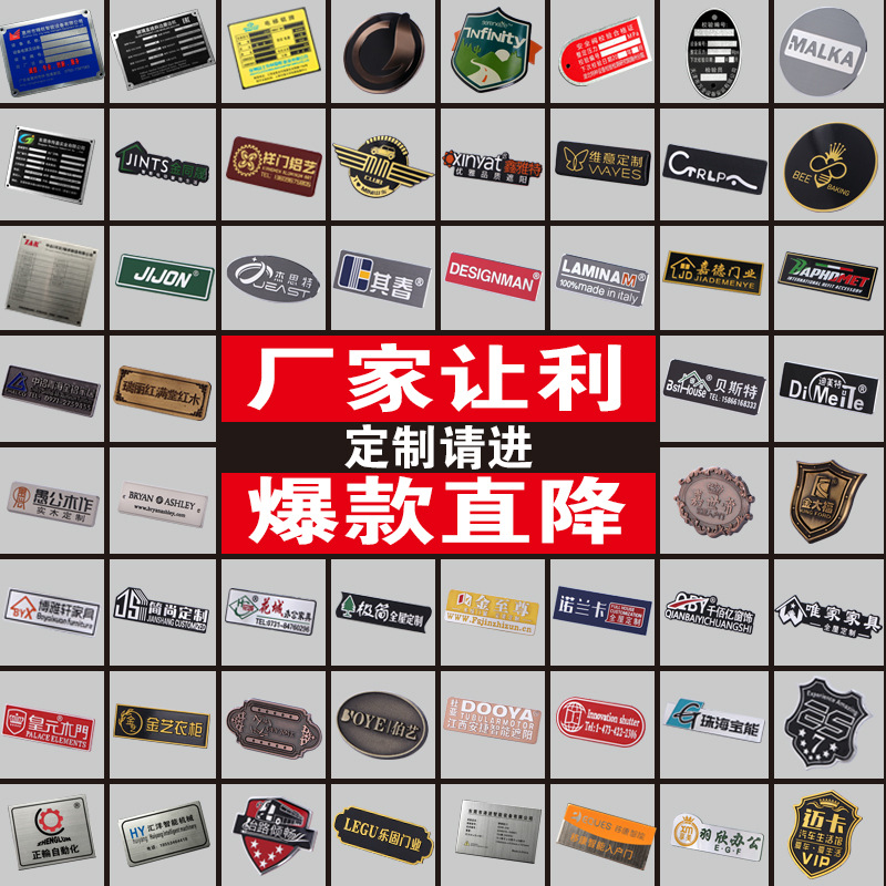 Pelat nama pembuat Label pelat aluminium kilau tinggi cap perusahaan logo layar sutra logam pelat perunggu paduan seng cembung