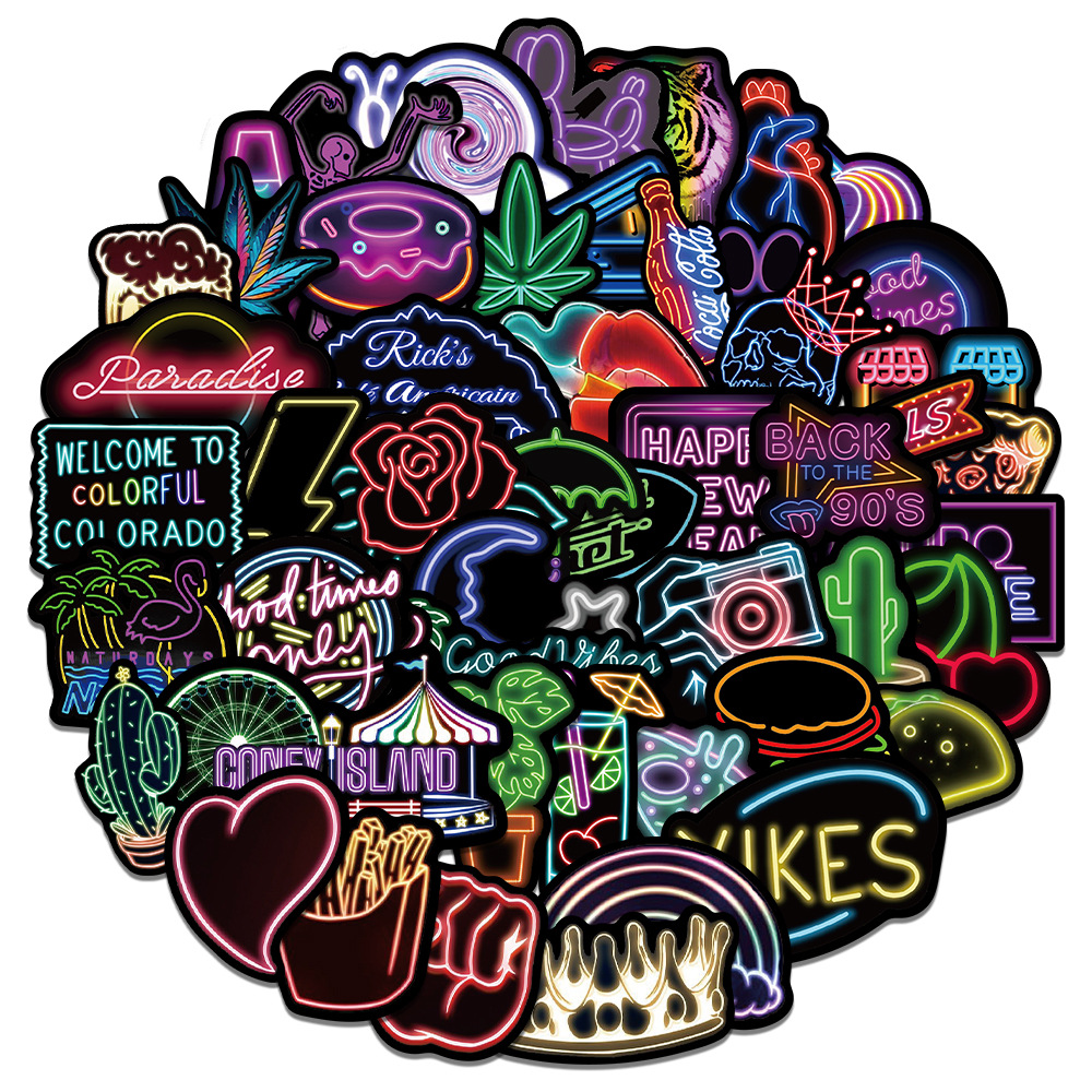 Stiker grafiti kartun neon, stiker helm skuter bagasi DIY 50 lembar/2