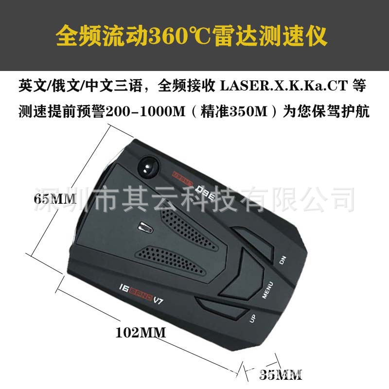 Perlengkapan otomotif velosimeter seluler dalam stok, tiongkok-inggris, perdagangan luar negeri Rusia V7 peringatan kendaraan anjing elektronik radar multi-fungsi