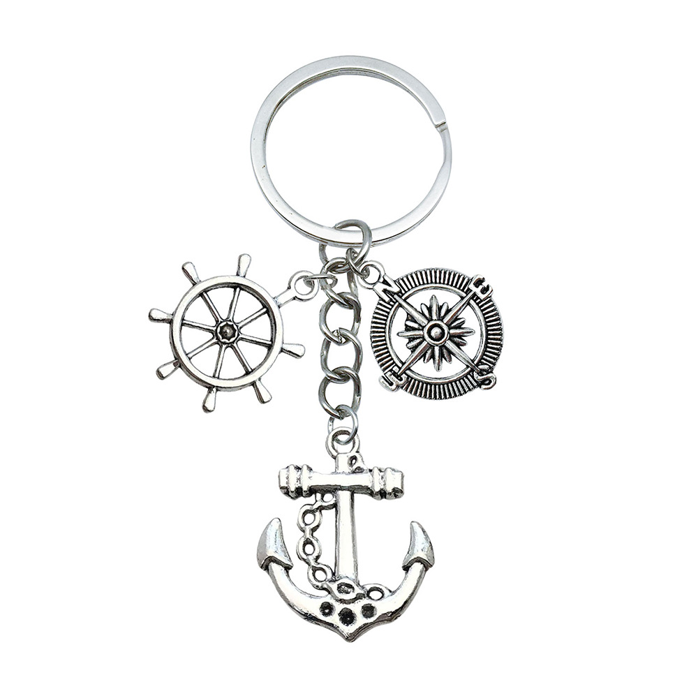 Diskon besar Amazon cross-border eksklusif baru kuno paduan perak kompas jangkar gantungan kunci aksesoris perhiasan