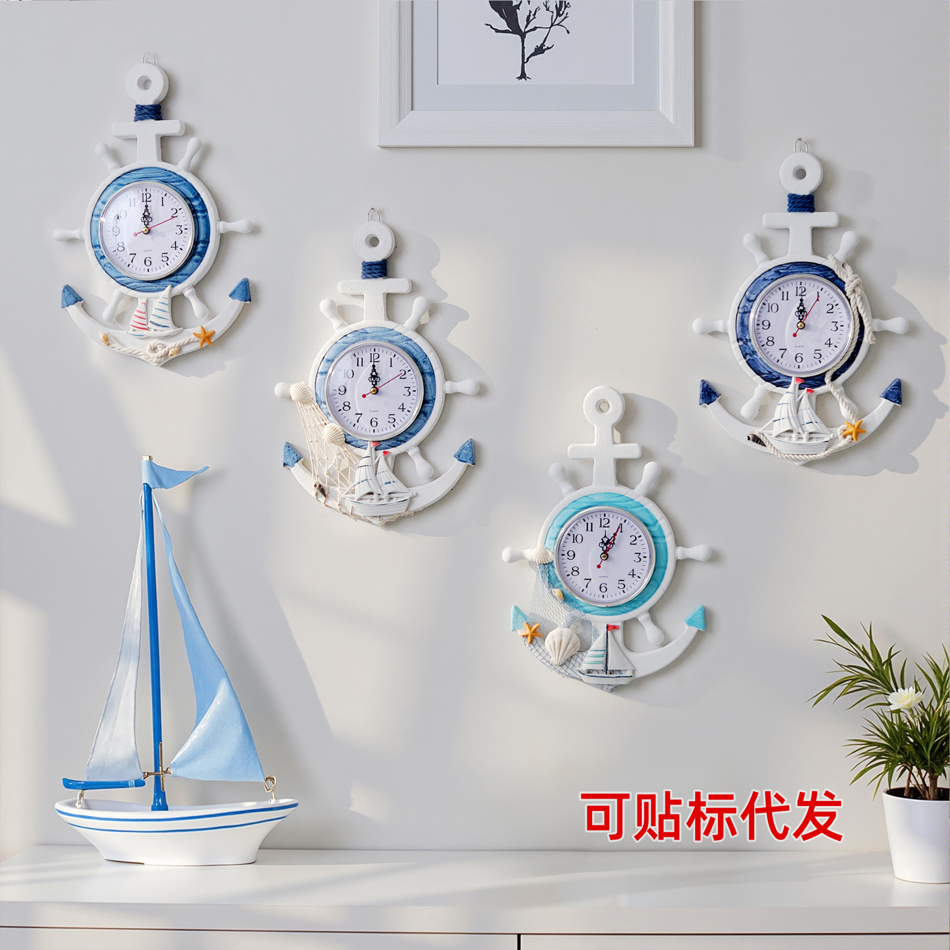 Dekorasi dinding rumah, gaya kreatif ruang tamu dekorasi dinding kerajinan kayu jam jangkar dekorasi dinding rumah
