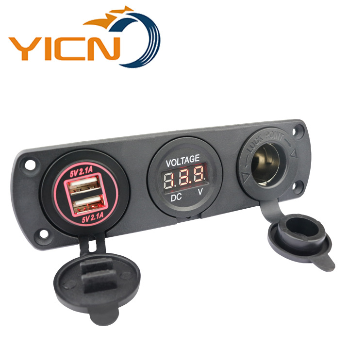 RV Marine cross-border panel kursi listrik khusus modifikasi kombinasi usb ganda pengisi daya mobil tampilan digital voltmeter 12-24v