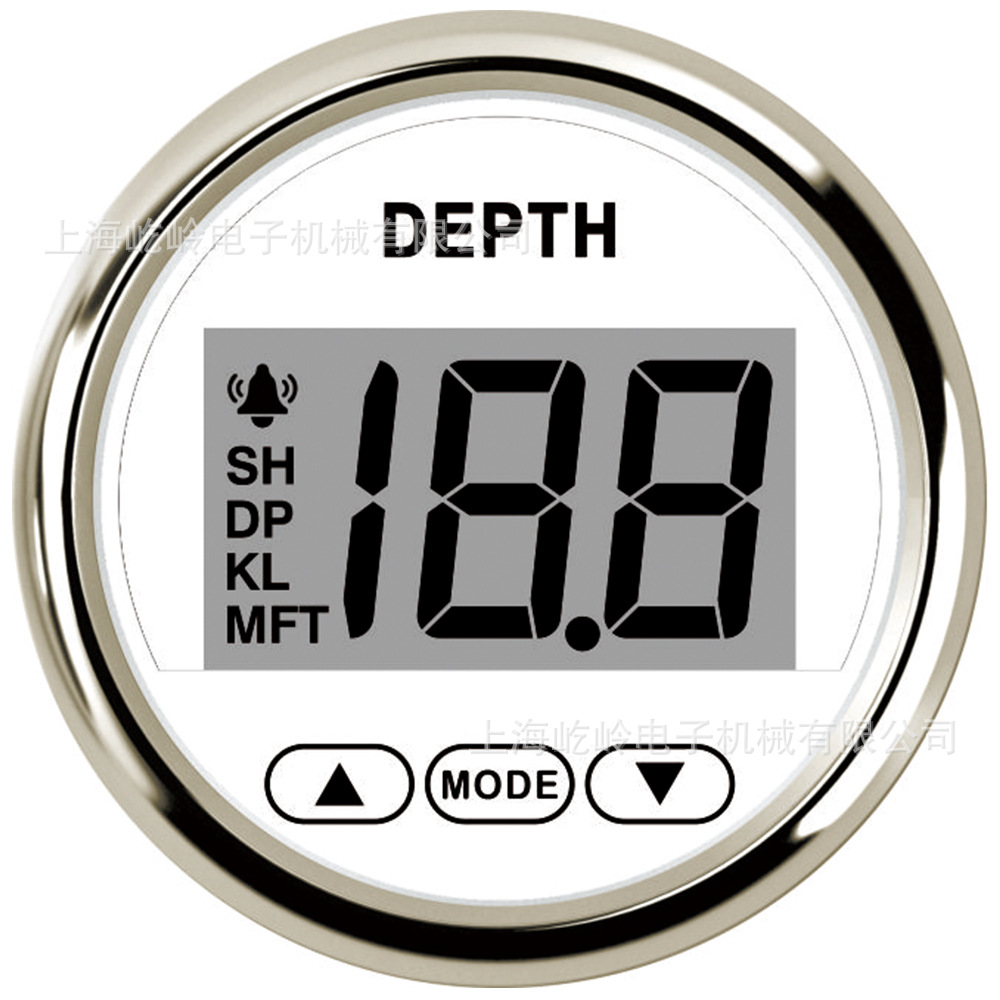 Pengukur kedalaman tampilan digital tahan air 52mm, cocok untuk kapal pesiar kecil dan sedang dan lampu latar putih lainnya