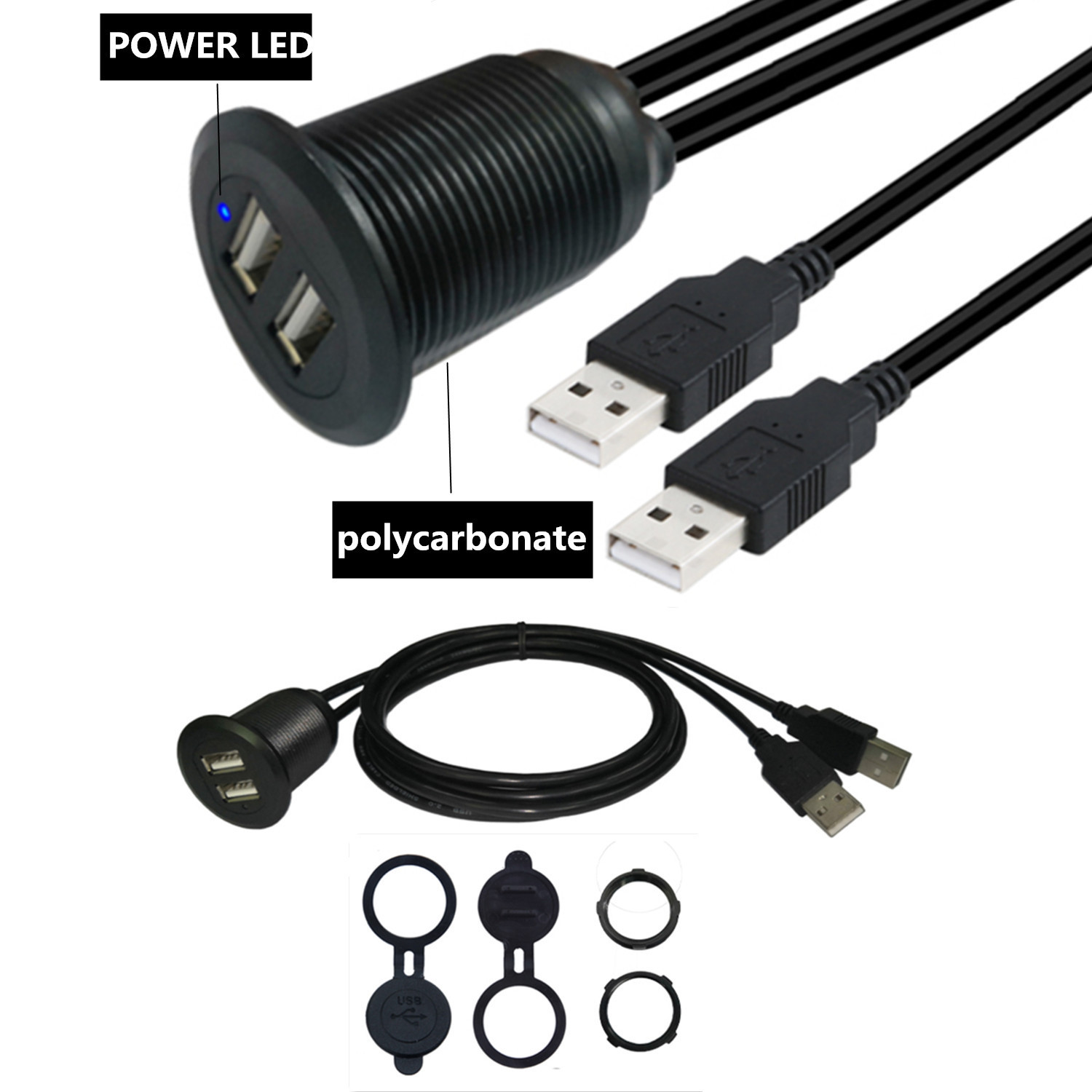 Kabel ekstensi PC dual port USB2.0 AM/AF, kabel ekstensi tahan air untuk dasbor mobil truk laut sepeda motor