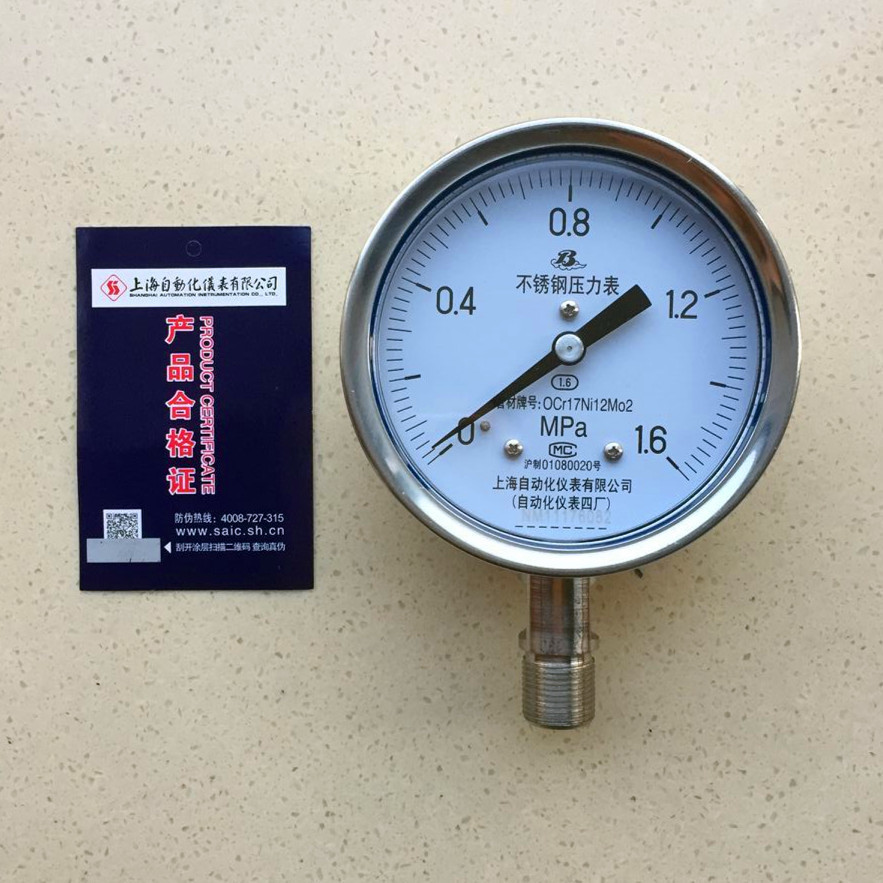 Shanghai Ziyi pabrik keempat Y-100BF pengukur tekanan baja tahan karat Shanghai Automation Instrument Co., Ltd.