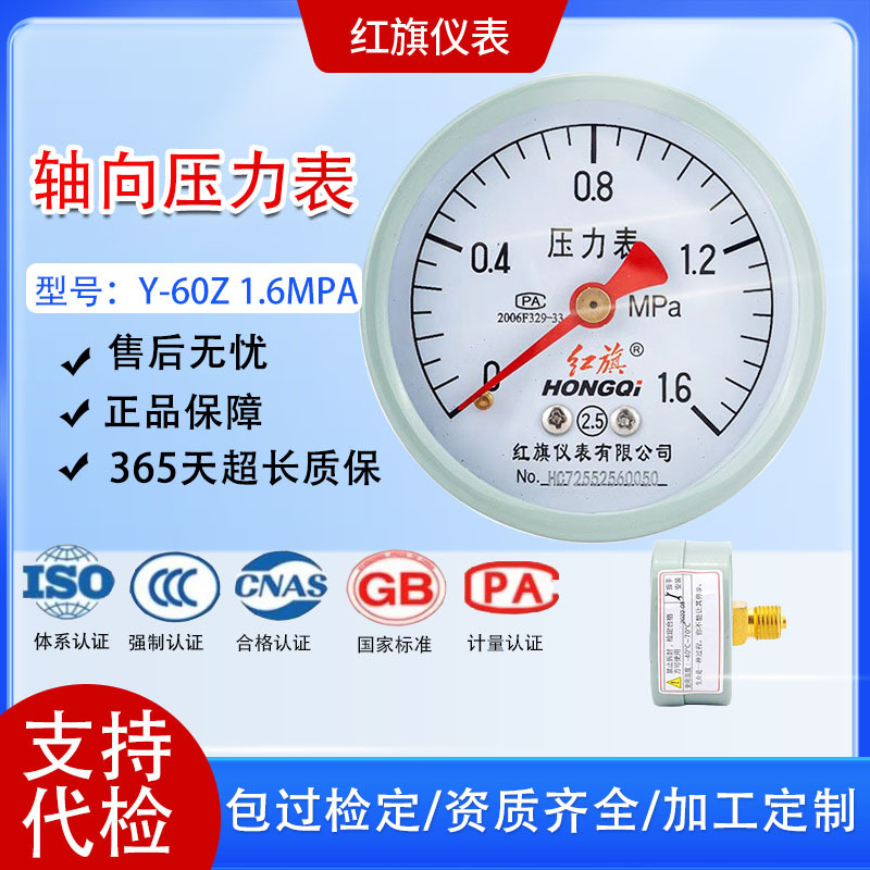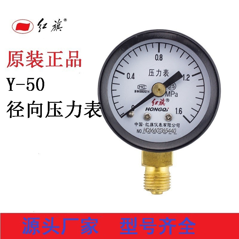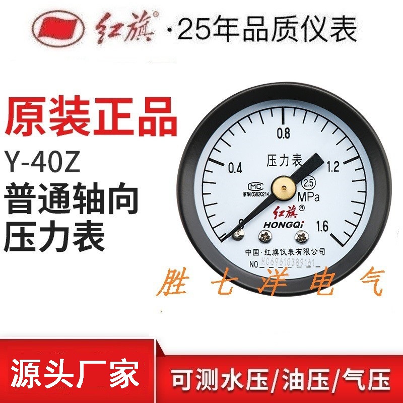 Pengukur tekanan air biasa bendera merah Y-40Z axial 0-25MPa spesifikasi lengkap pengukur tekanan air Pengukur tekanan minyak barang asli
