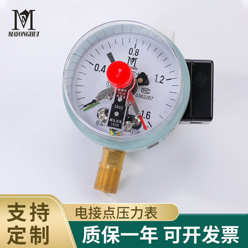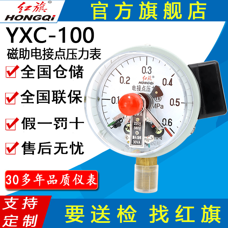 Alat pengukur tekanan merek Hongqi YXC-100 dengan kontrol batas atas dan bawah, pengukur tekanan kontak listrik berbantuan magnet untuk tekanan mikro.