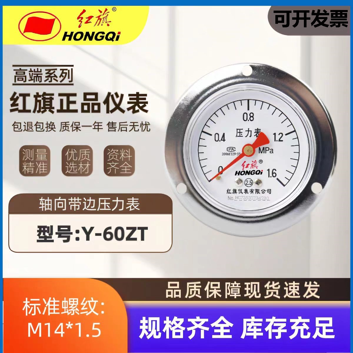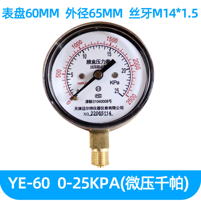 Instrumen bendera merah langsung pabrik dengan meteran tekanan depan y60xt meteran vakum tekanan udara pemasangan panel