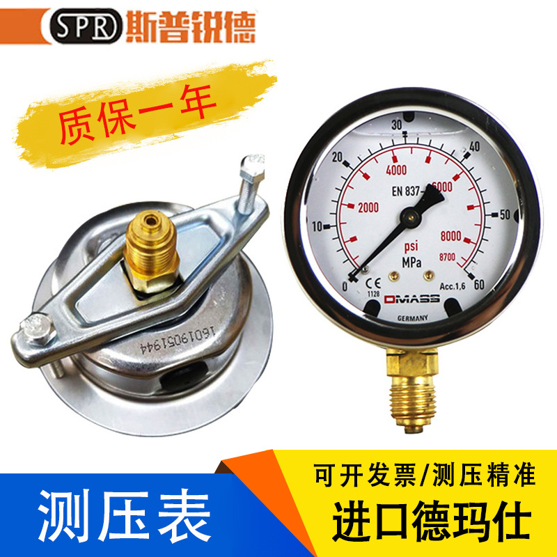 Impor Jerman demashi pengukur tekanan DMASS braket tetap mesin cetakan injeksi penggalian aksial baja tahan karat pengukur hidrolik