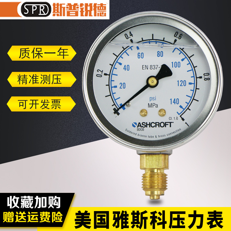Alat ukur tekanan hidrolik Yasco, alat pengukur tekanan, alat ukur tekanan rendah, tekanan tinggi, pengukur tekanan tahan guncangan, baja tahan karat, Amerika Yasco