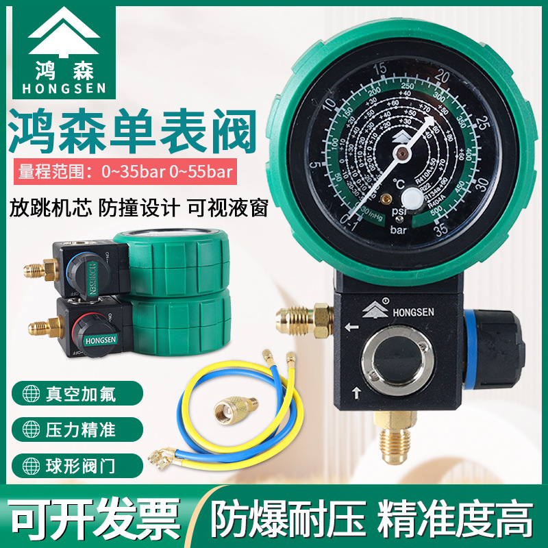 Hongsen M480 pengukur tekanan visual, refrigerant AC, pendingin udara, fluorometer biji salju, pengukur tunggal, katup bola, katup pengisian