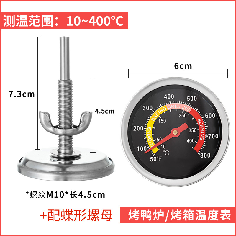 Termometer jarum pendek, penunjuk kompor barbekyu, termometer suhu tinggi, kompor gantung bebek oven stainless steel jarum pendek