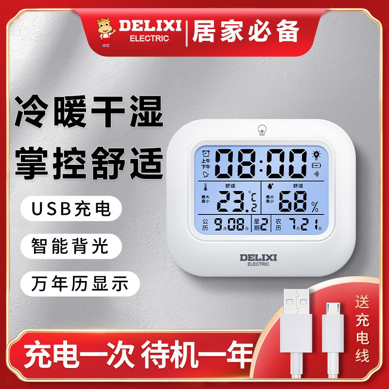 Delixi Pengukur Suhu Elektronik dan Kelembaban Pengukur Suhu Presisi Tinggi Dalam Ruangan Rumah Termometer Hadiah Grosir