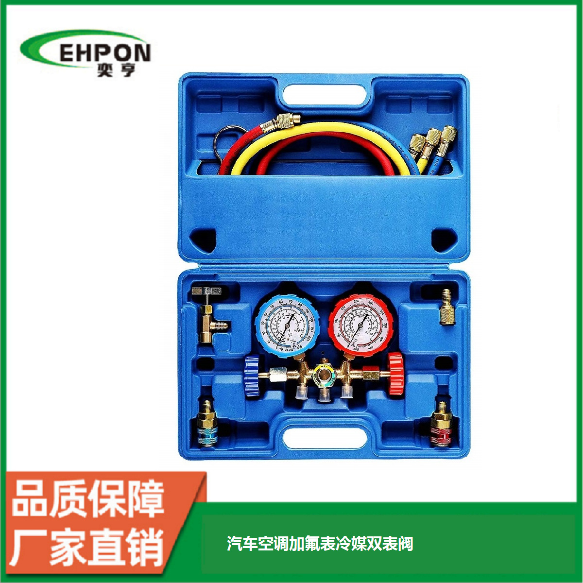 R134a pengukur tekanan refrigerant meter, alat pengukur tekanan fluorometer mobil fluorometer biji salju R410 refrigerant meteran ganda katup AC fluorinasi