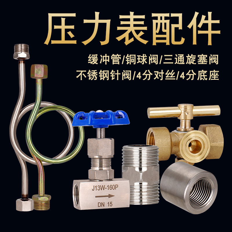 304 pengukur tekanan stainless steel buffer tabung kondensor mulus menebal M20/M14 * 1.5 meteran bergerak melengkung 4 poin