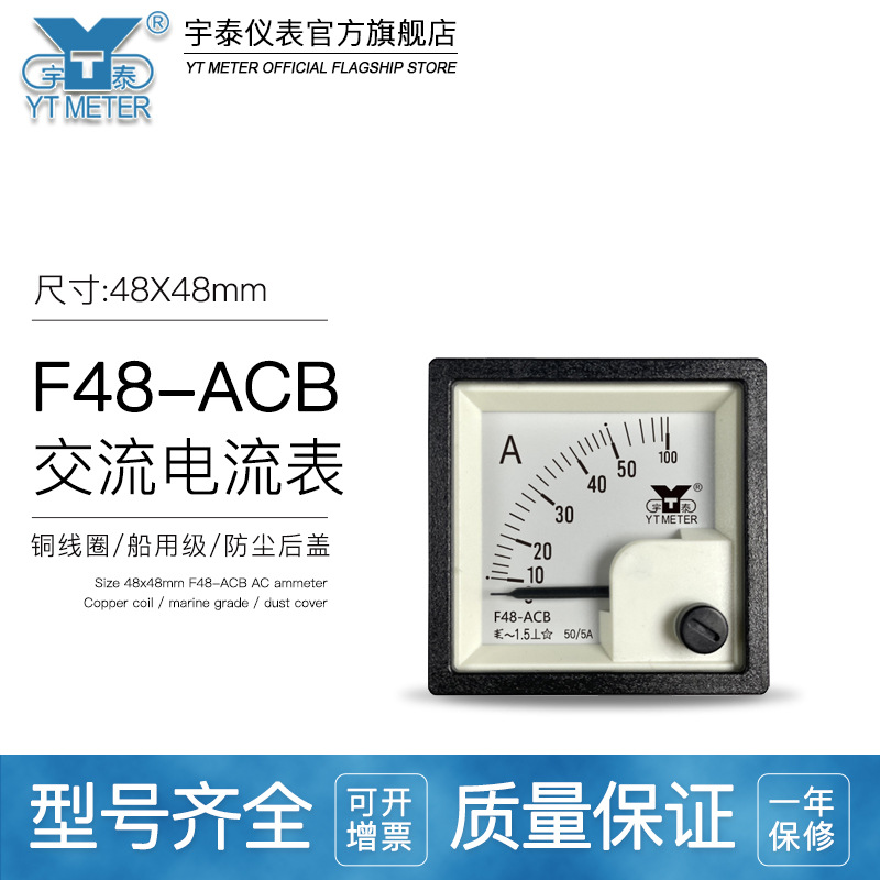 F48-ACB ac ammeter voltmeter 30/50/75/100/200/5A 450V 500V Marine YT